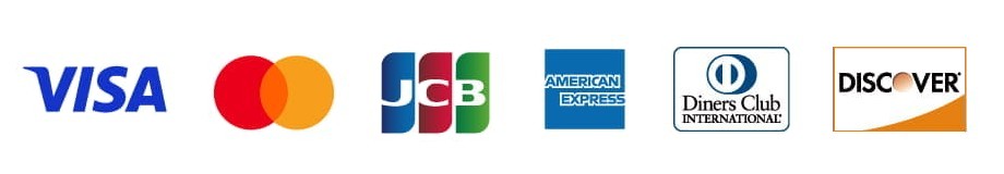 VISA、マスターカード、JCB、アメリカン・エキスプレス、ダイナースクラブ、ディスカバー